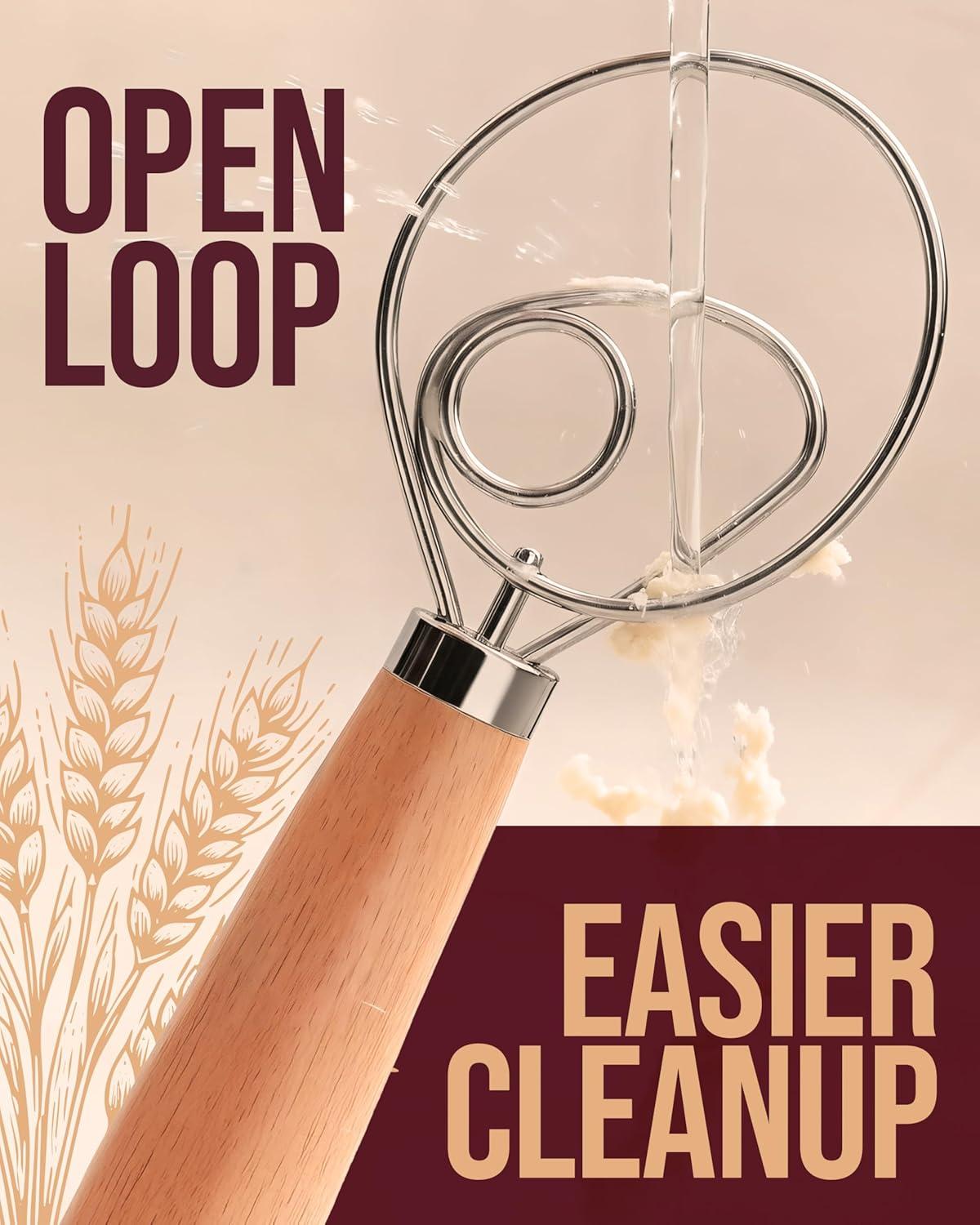 EFFICIENT MIXING & EASY CLEANUP: The single-eye open loop design cuts through stiff doughs with less effort and prevents clogging for simple rinsing, making it a highly effective and convenient sourdough essentials.