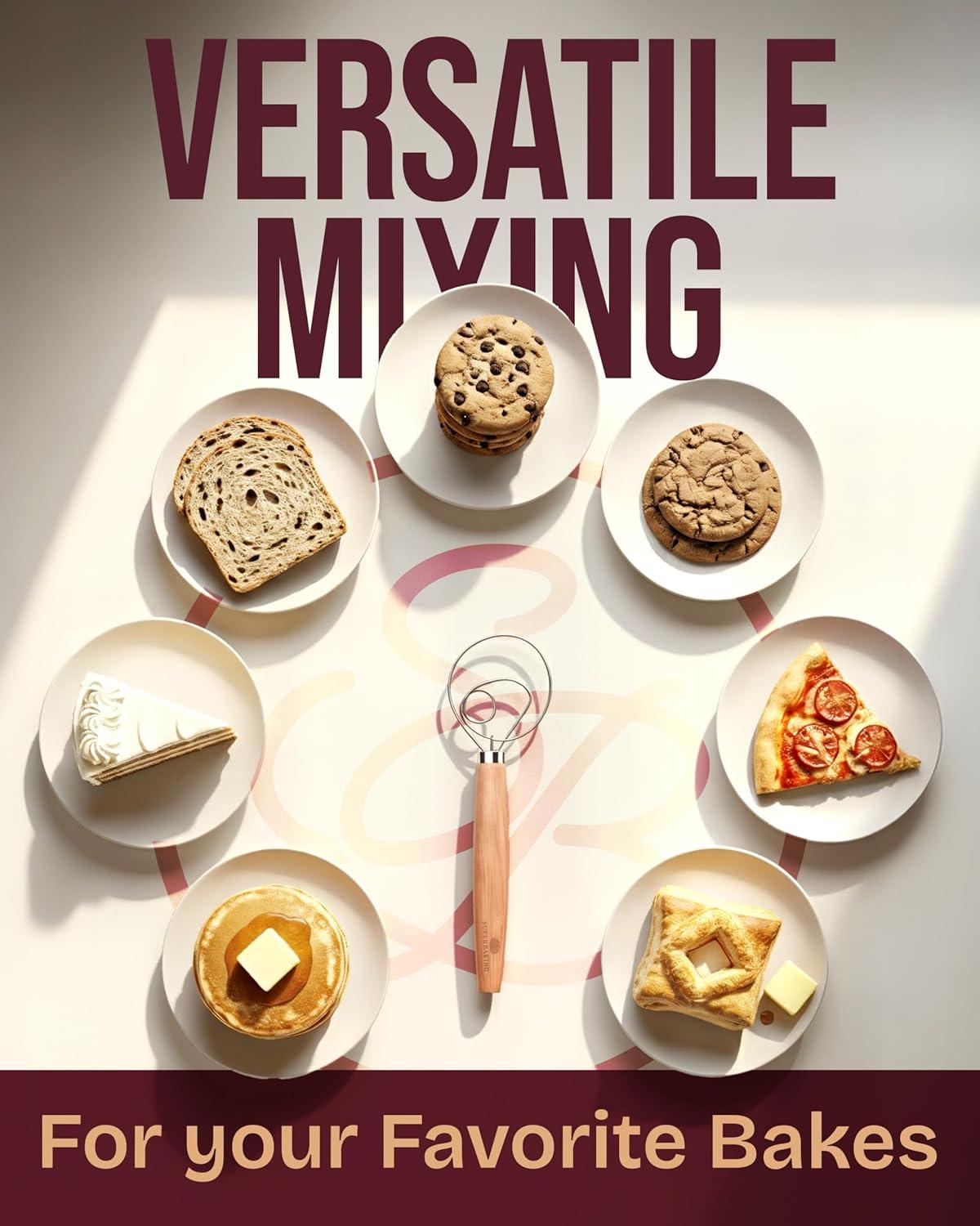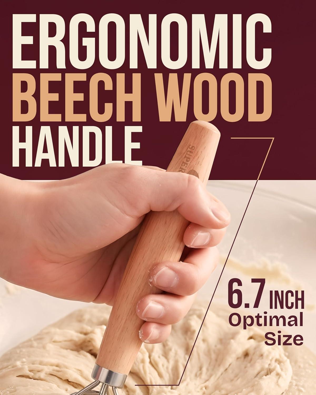 REDUCE HAND FATIGUE: The smooth, cylindrical handle is crafted from premium beech wood for a natural, comfortable grip. Its ergonomic shape is designed to reduce strain during extended mixing sessions.