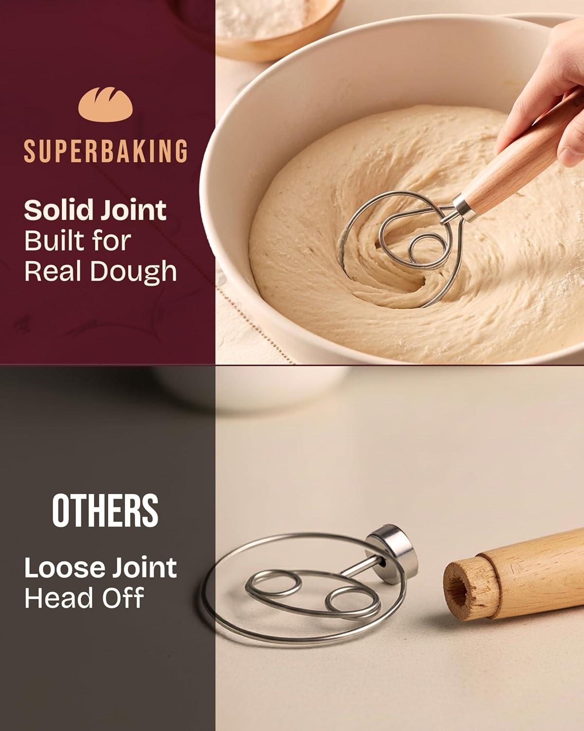 BEGINNER-FRIENDLY GUIDE: This bread dough whisk includes a clear instruction manual with care tips and an inspiring recipe book to get you started on your home baking adventure right away.